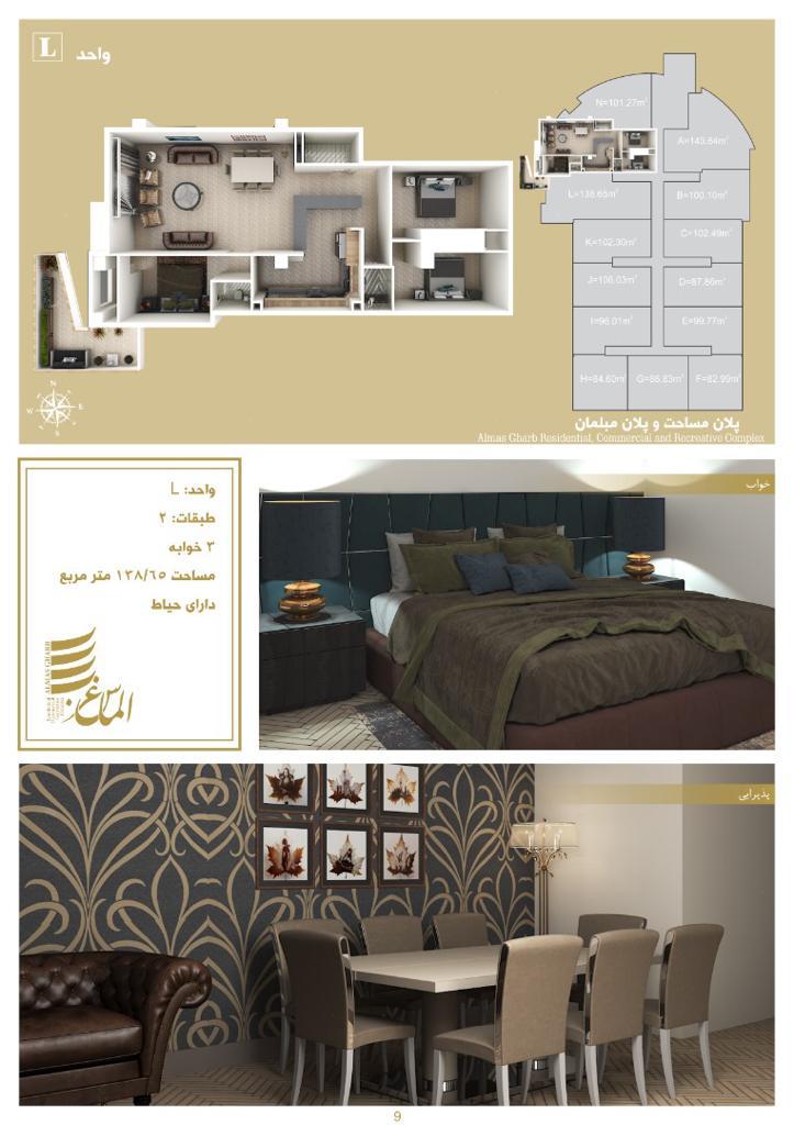 ۷- واحدهای مسکونی در 3 طبقه و ۴۲ واحد به مساحت تقریبی …. با ویژگیهای نظیر حیاط مستقل، نگهبانی مجزا، آسانسور، دوربین مدار بسته، سیستم گرمایش پکیج، آنتن مرکزی، پارکینگ عمومی و …